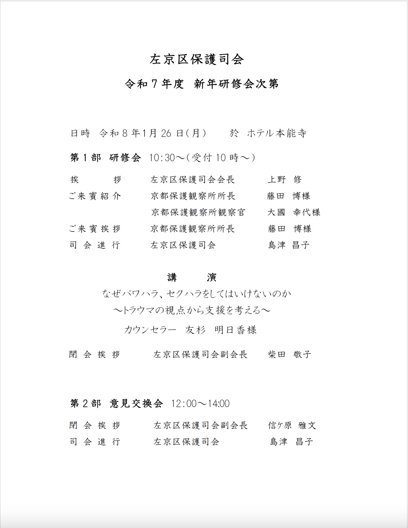 左京区保護司会 令和7年度 新年研修会を開催いたしました。